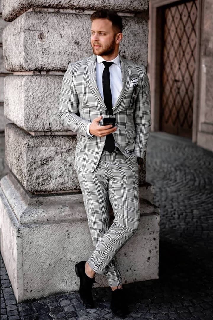 Der Urlaub ist vorbei und nun ruft die Arbeit wieder. Aus diesem Anlass habe ich für dich ein Outfit Vorschlag wie du stylish mit einem Karo-Muster Anzug im Büro antrittst.