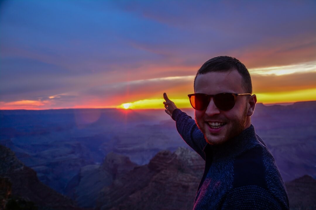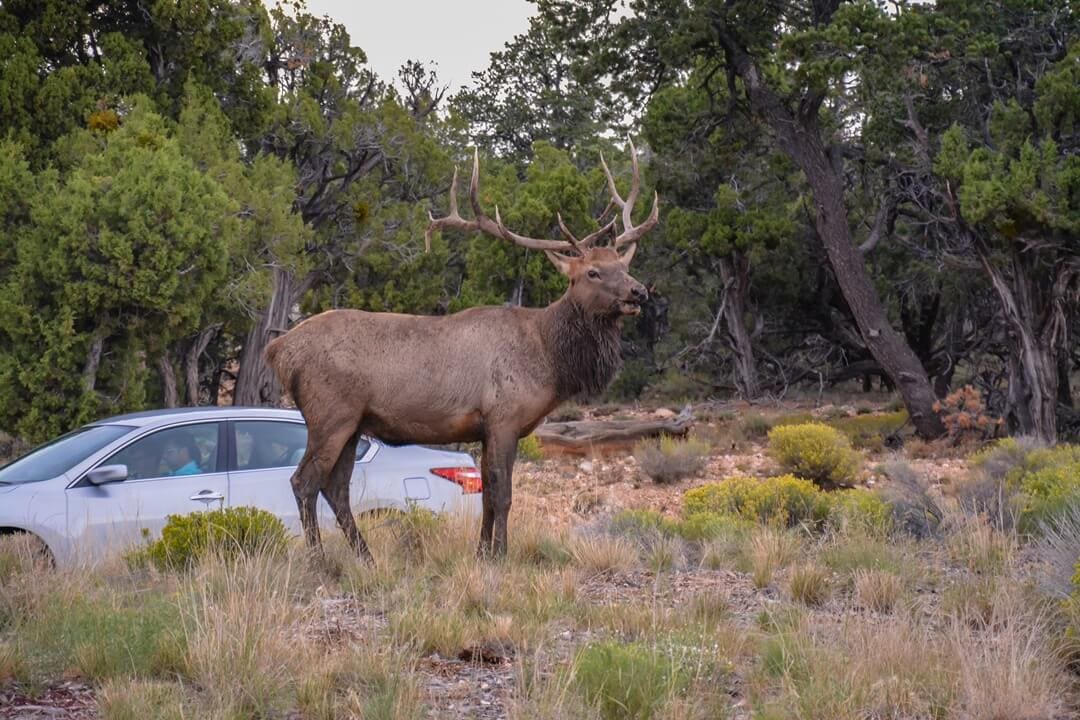 Die Fahrt vom Yosemite National Park zum Grand Canyon war eine kleine Herausforderung, 700 Meilen – um die 11 Stunden. Da wir vom Wandern so Müde waren, haben wir uns bei der Mitte der Fahrzeit entschieden etwas zu schlafen. Am Grand Canyon sind wir dann gegen Nachmittag angekommen und hatten das Glück einen Elch sehen zu können. Das Tier war echt riesig, hätte ich nicht gedacht. Gegen Abend sind wir dann zum Sonnenuntergang an den Desert Viewpoint. Wie zuvor auch, muss ich hier erwähnen, dass die Abende am Grand Canyon zu der Zeit kalt werden und mir dank meinem Sweatshirt von hajo Polo nicht kalt wurde. Der Tragekomfort des Sweatshirts ist echt super angenehm, sodass ich den Sonnenuntergang bestens damit genießen konnte.